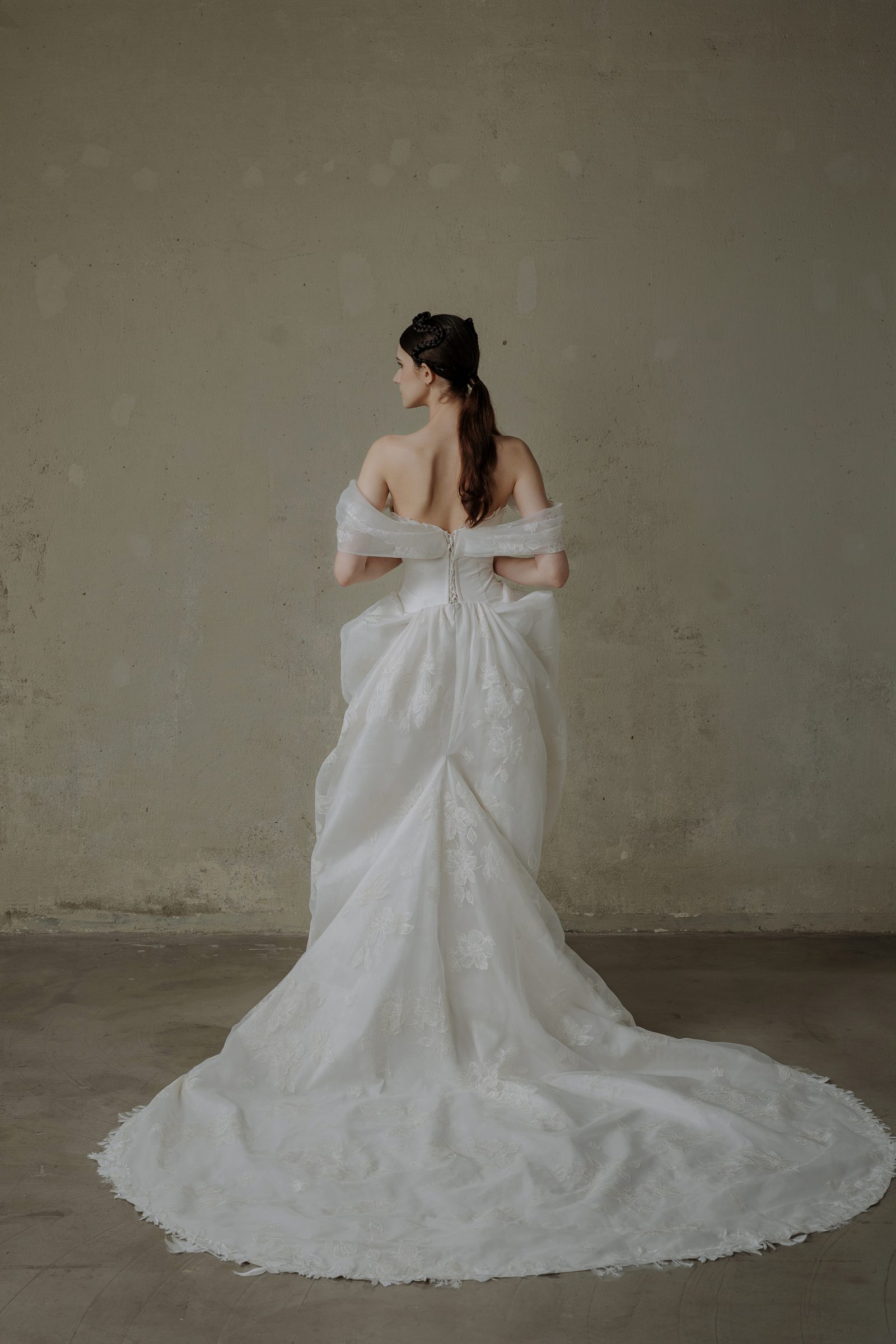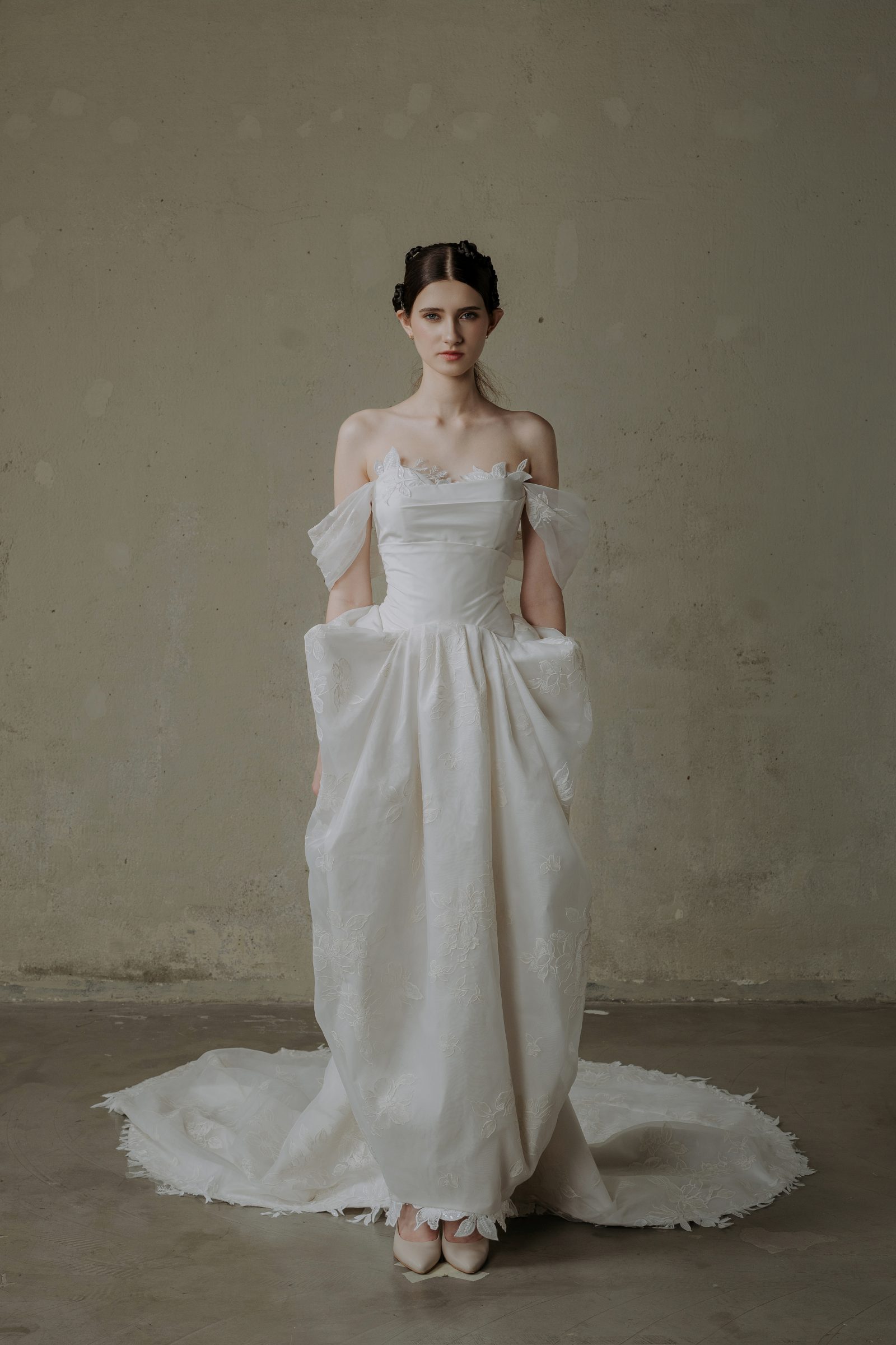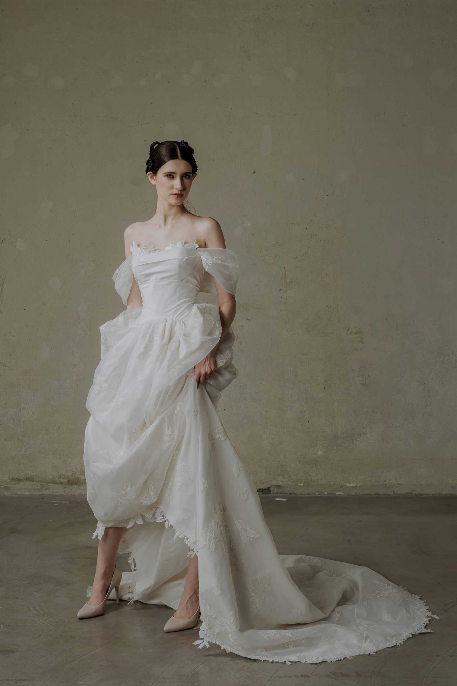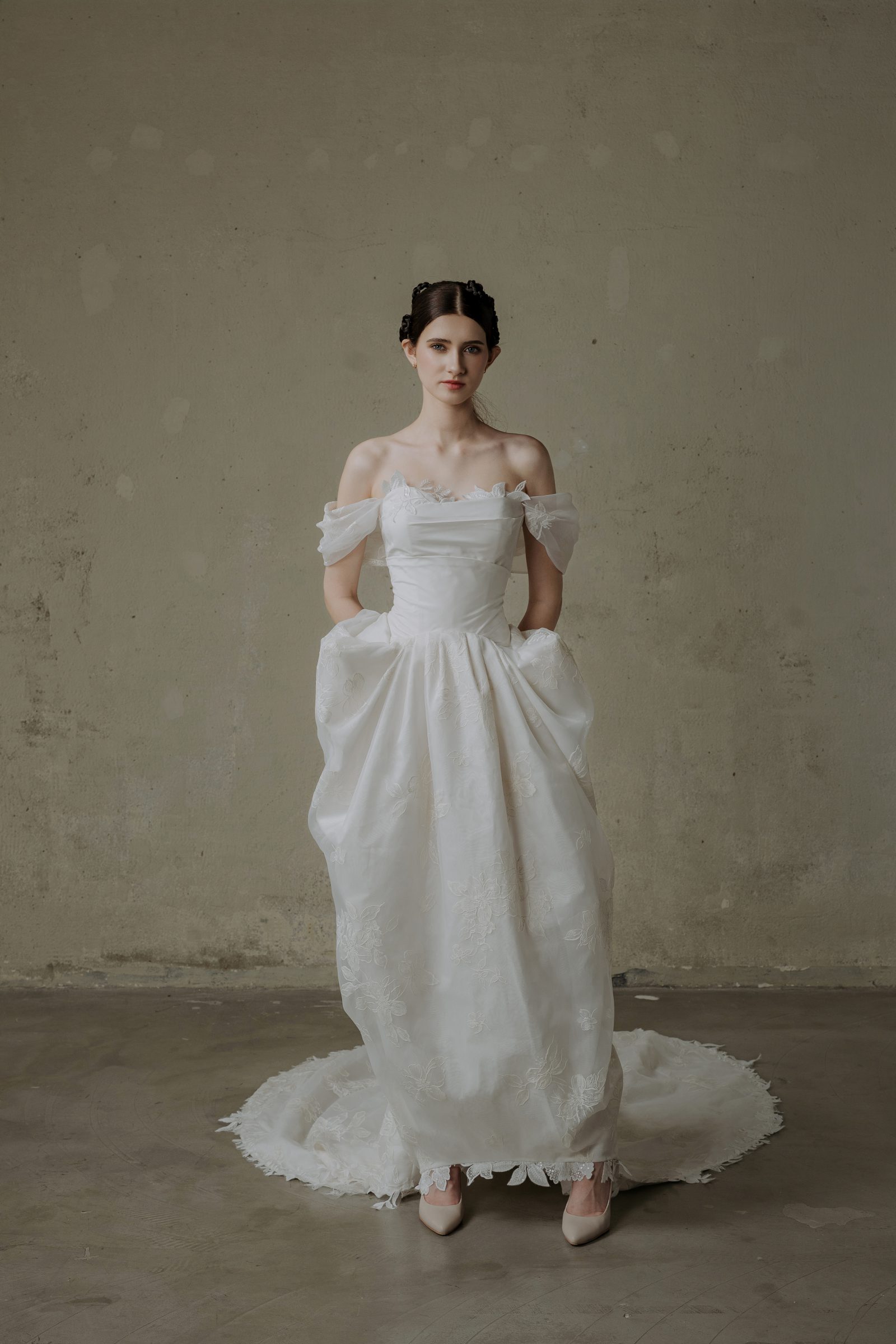 Custom (May theo số đo riêng, điều chỉnh thêm) – From 45,000,000 VND. Please contact us via messenger at m.me/oliviangbridal or email at contact@oliviang.com.