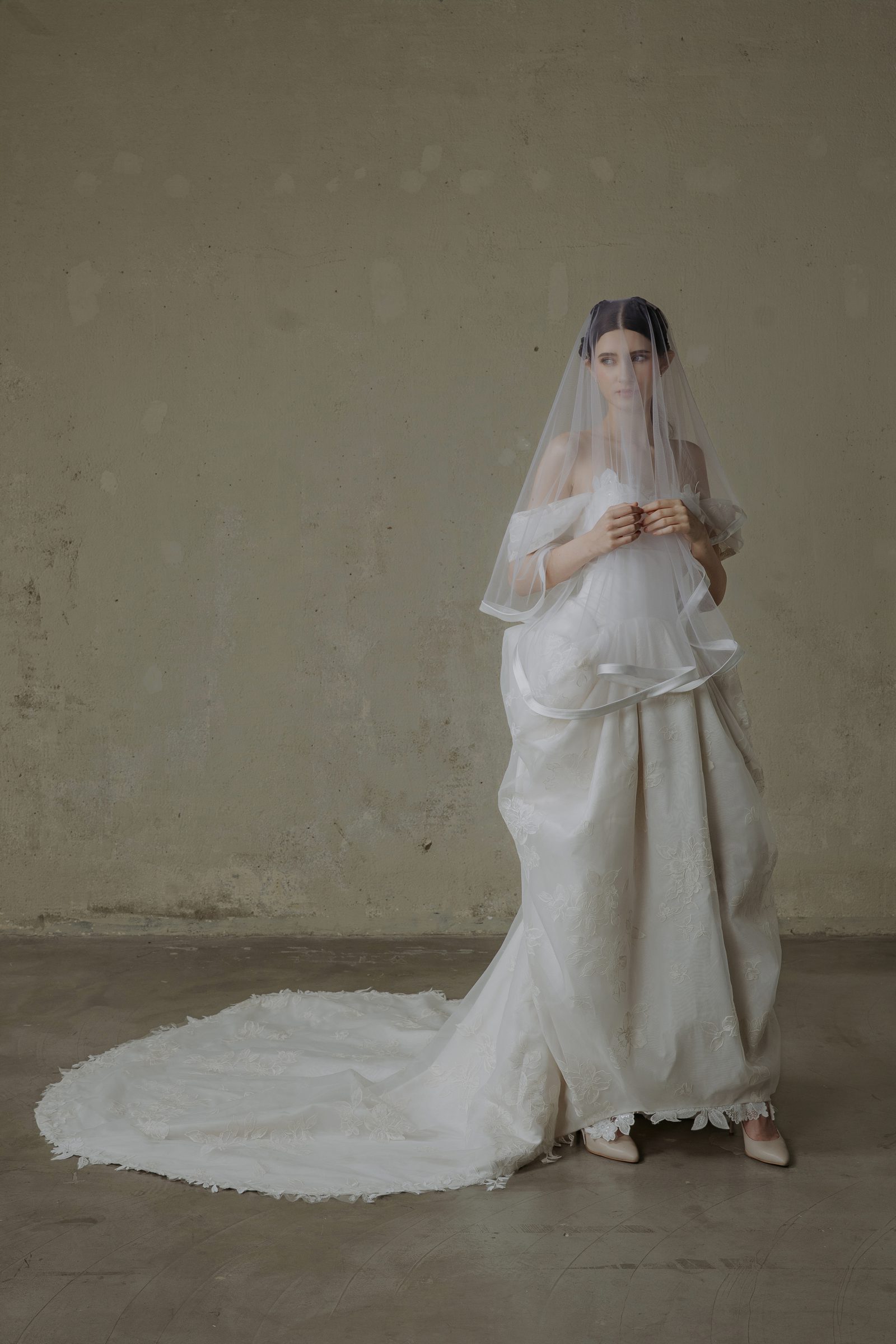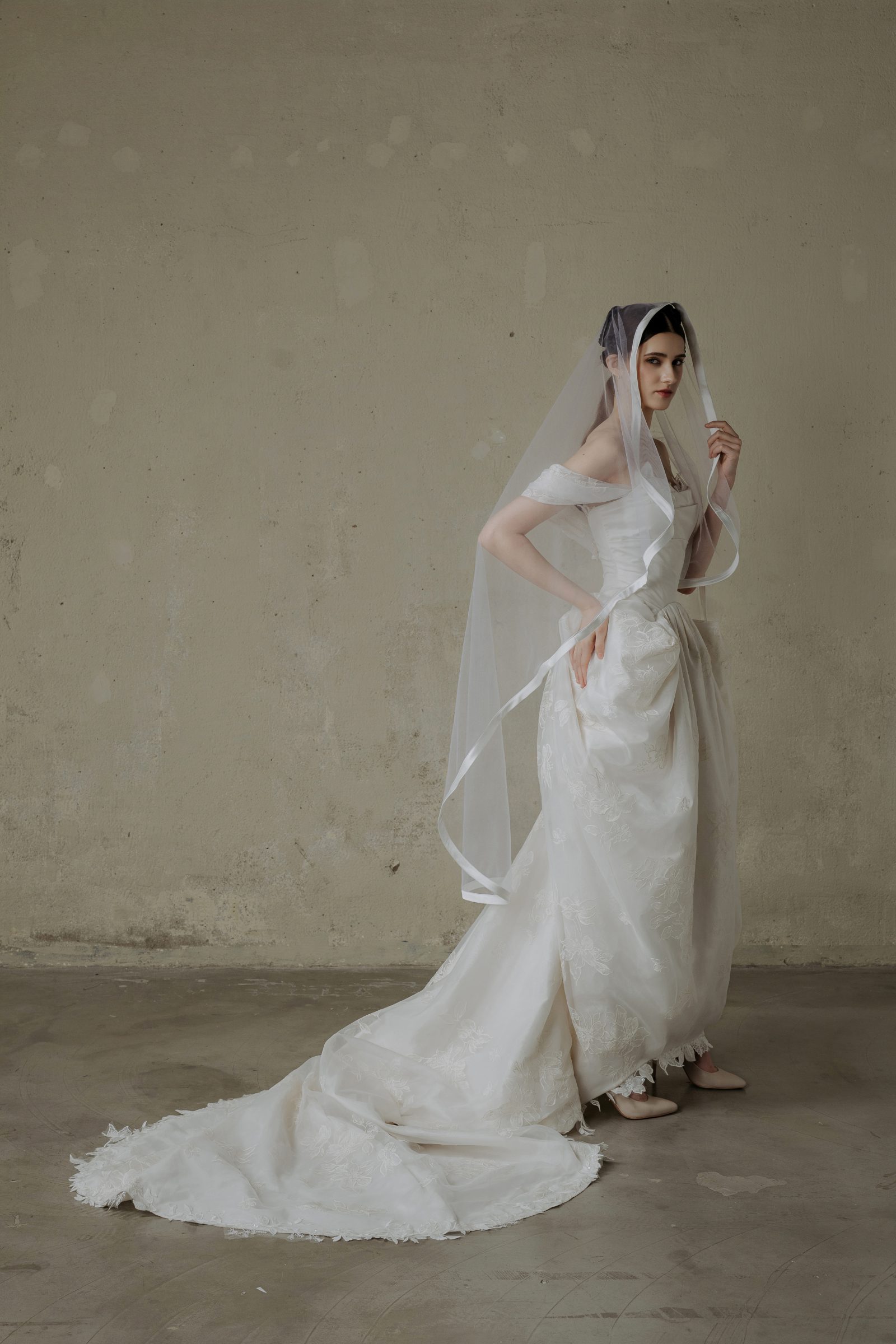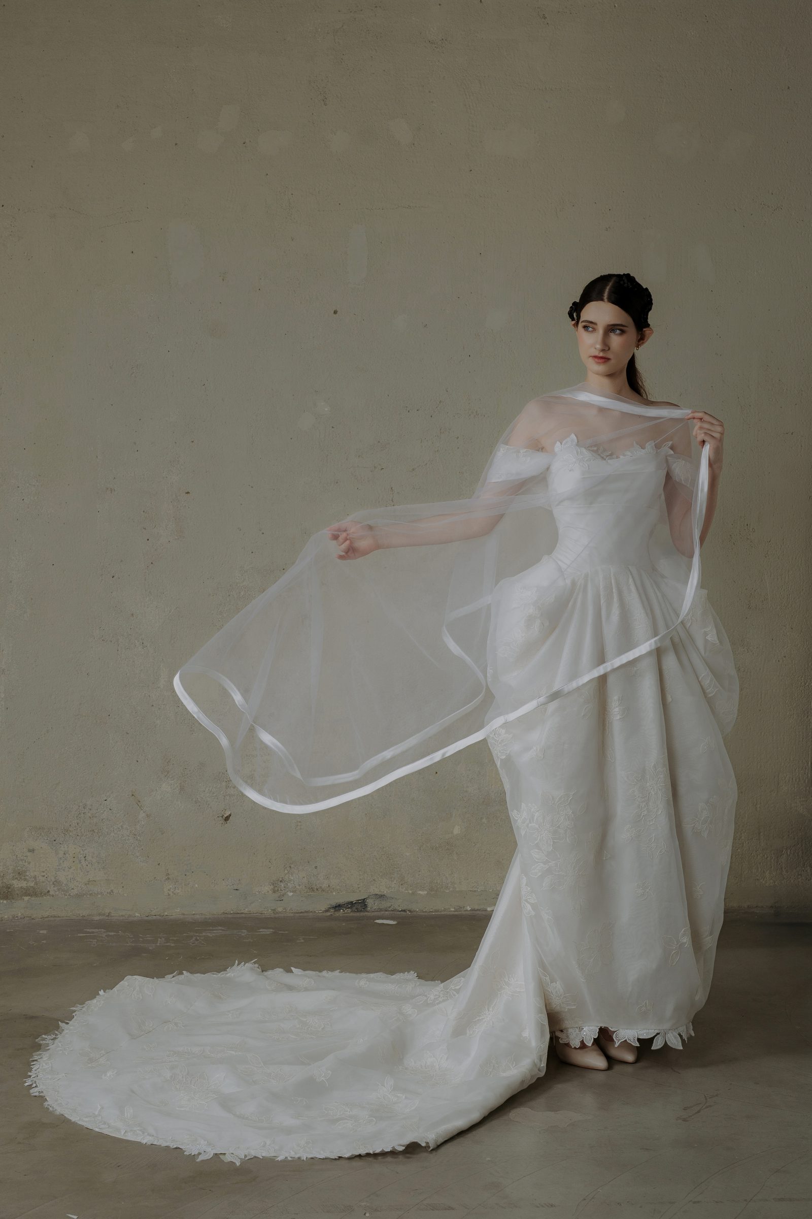 Rental (Thuê) – 16,000,000 VND (including one (1-2 meters) veil, one bridal robe) (gồm 1 lúp trơn 1-2m + áo ngủ make up có sẵn miễn phí)