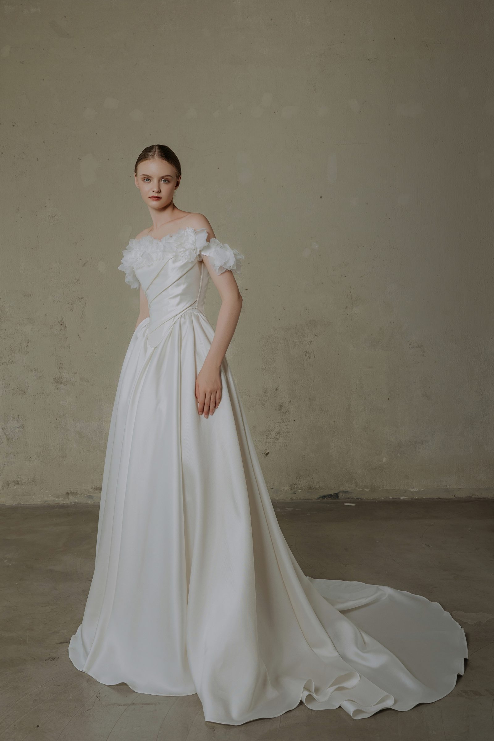 Custom (May theo số đo riêng, điều chỉnh thêm) – From 35,000,000 VND. Please contact us via messenger at m.me/oliviangbridal or email at contact@oliviang.com.